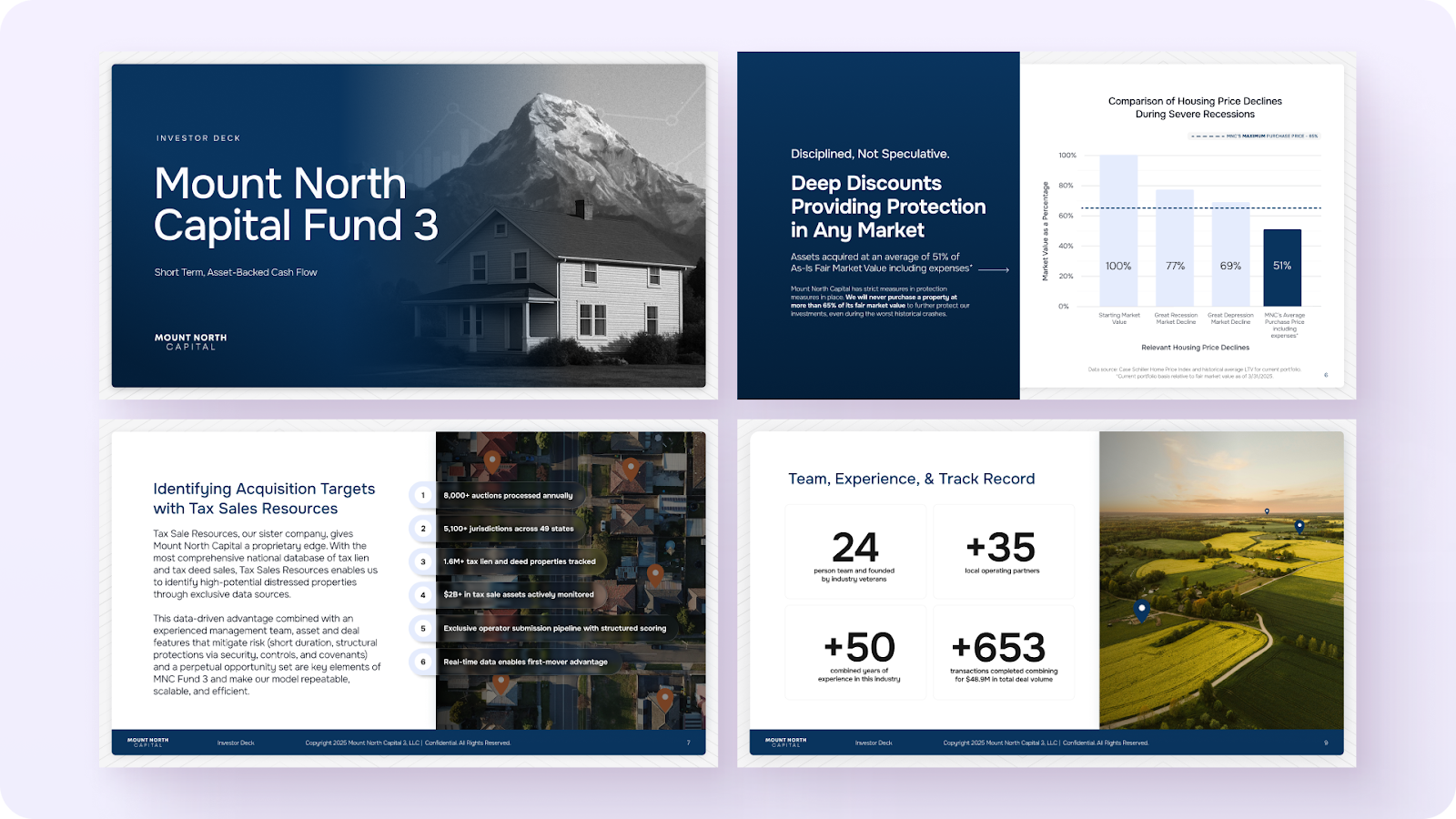 Mount North Capital is a real estate investment fund specializing in asset-backed, short-duration distressed credit. They focus on real assets, conservative structures, and defined timelines, offering investors an alternative to longer-dated, harder-to-exit private credit products.